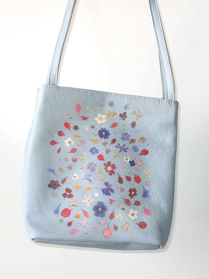 Bags cannot be made, obviously, by real dried flowers, but a picture of them is taken and printed on the bag: so, every bag comes from its original composition of real dried flowers.