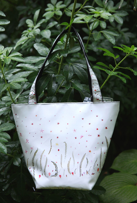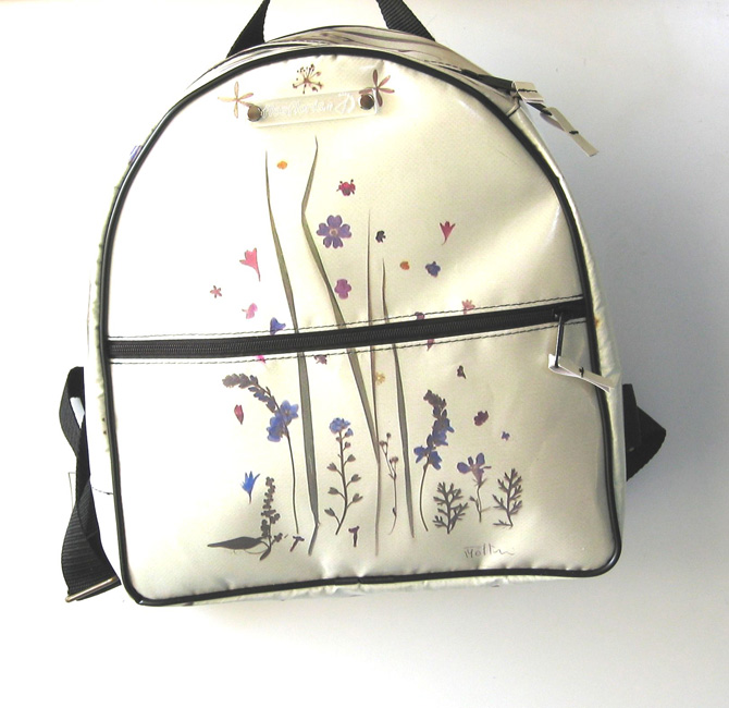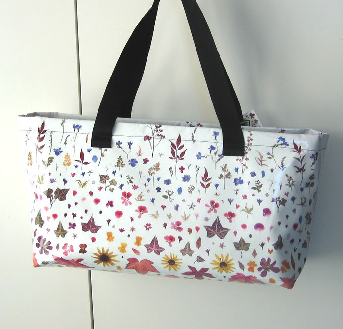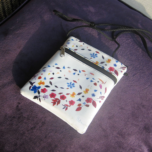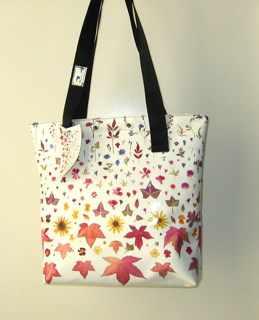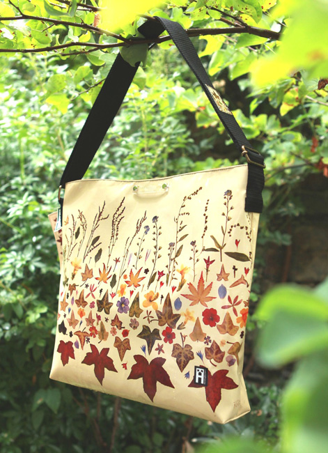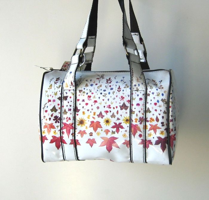 bag mod. MINI CITY Q - A (double handle + velcro closure), image of composition created with dried flowers (natural colors) "FOGLIE ACERO E FIORELLINI SU FONDO BIANCO" (comp. 033) |