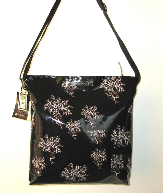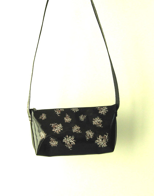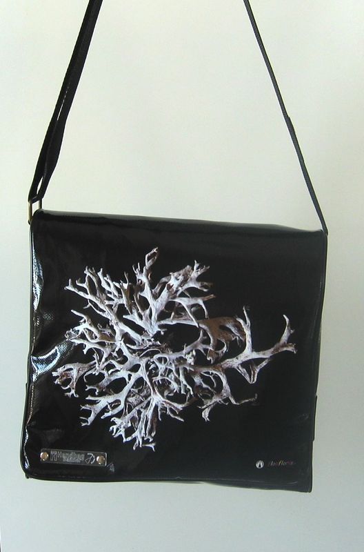 bag mod. MINI CITY Q - D (shoulder belt + zip closure), image of composition created with dried flowers (natural colors) "LICHENI RIPETUTI SU FONDO NERO" (comp. 077) |
