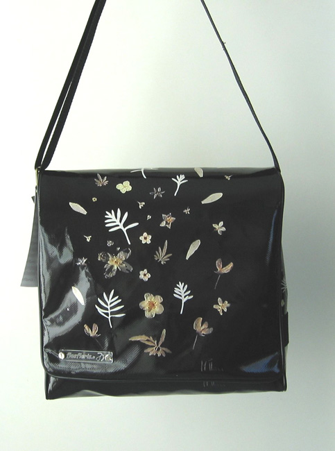 bag mod. BANNER MEDIUM, image of composition created with dried flowers (natural colors) "FOGLIE E FIORI BIANCHI SU FONDO NERO" (comp. 079) |