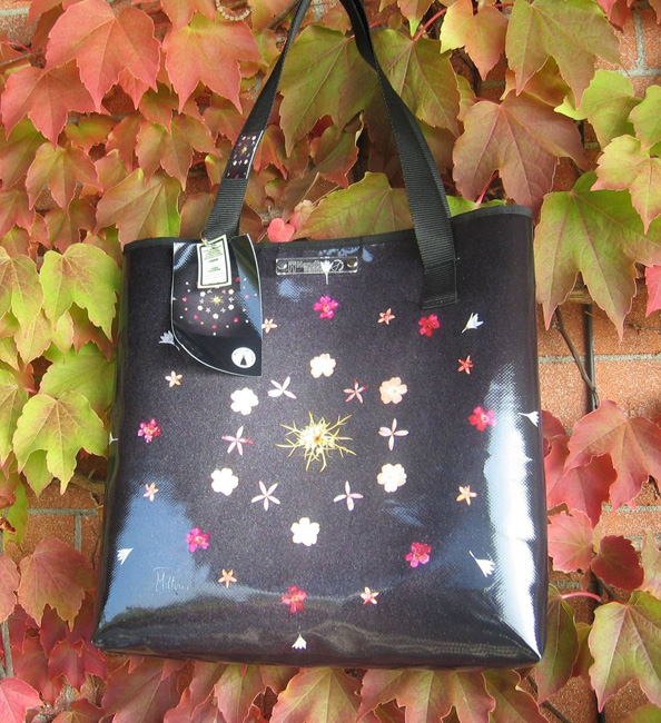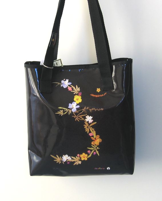 bag mod. MINI CITY Q - A (double handle + velcro closure), image of composition created with dried flowers (natural colors) "SIMBOLO OM SU FONDO NERO" (comp. 014) |