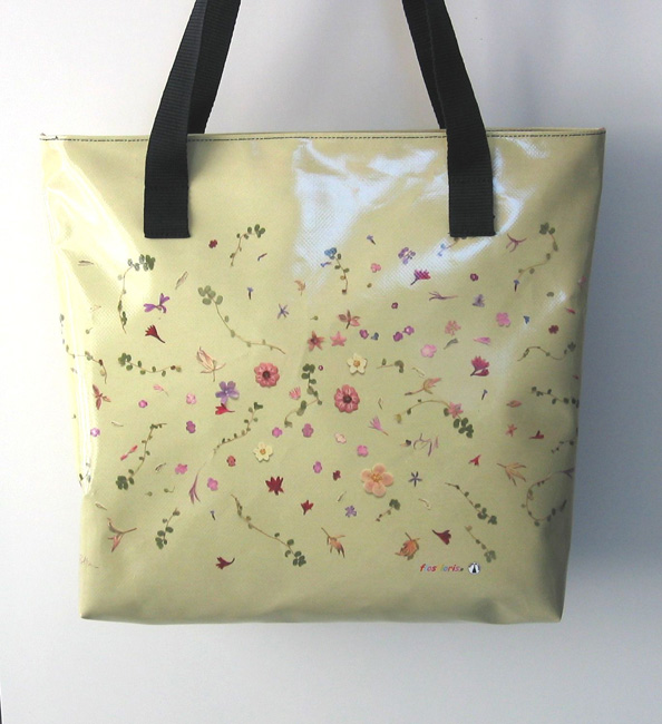 bag mod. CITY Q - B (double handle + zip closure), image of composition created with dried flowers (natural colors) "FIORI E RAMETTI SPARSI SU FONDO GIALLINO" (comp. 053) |
