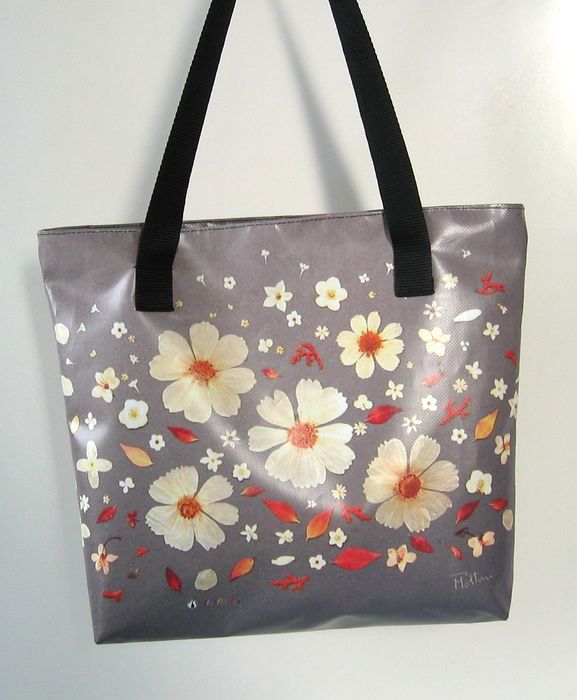 bag mod. CITY Q - B (double handle + zip closure), image of composition created with dried flowers (natural colors) "COSMEE BIANCHE SU FONDO GRIGIO" (comp. 030) |