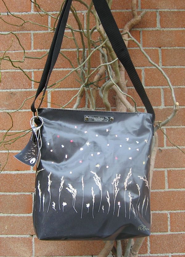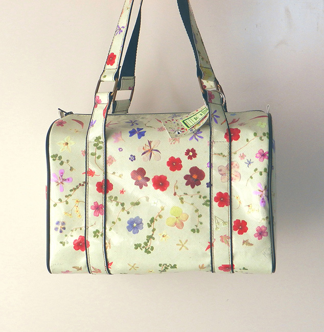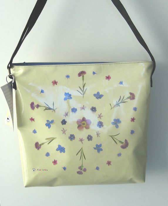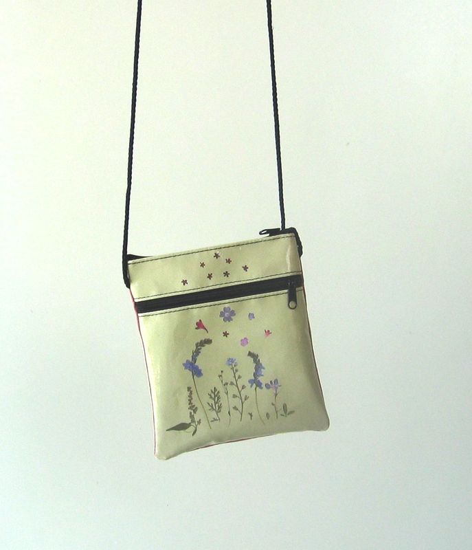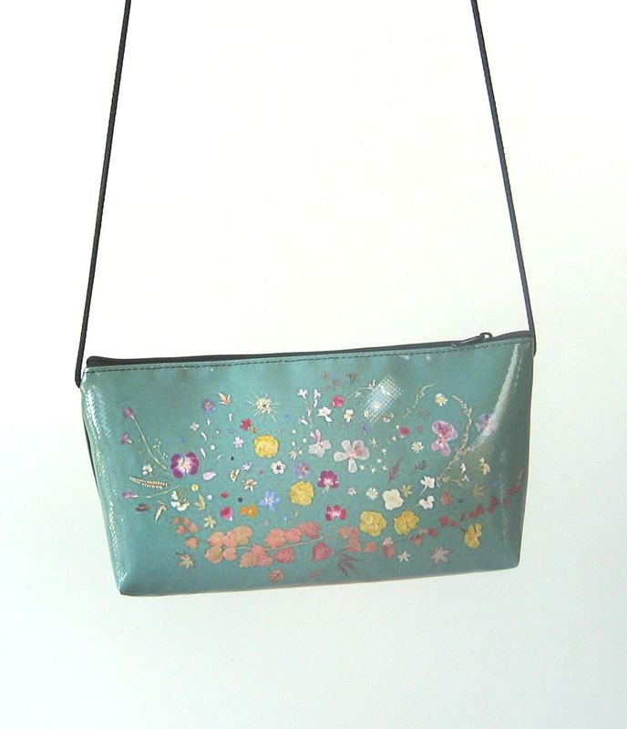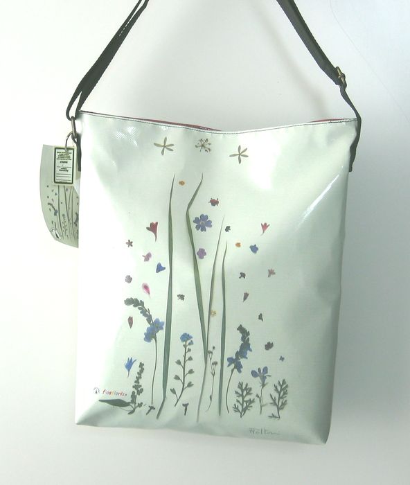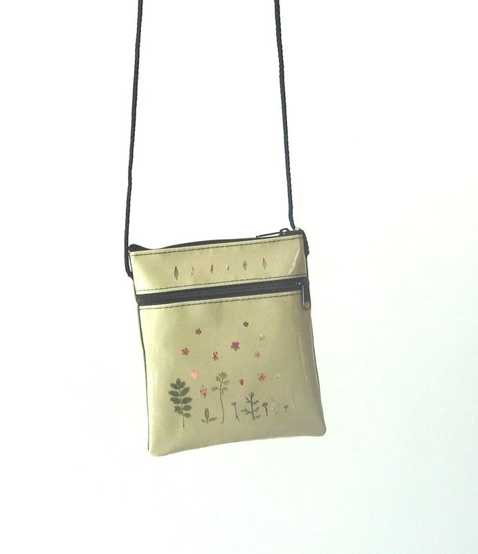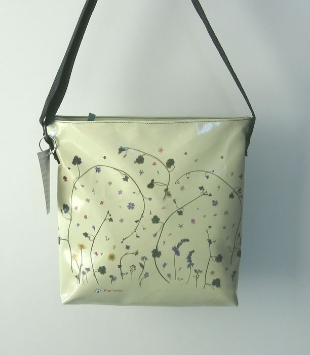 bag mod. CITY V - D (shoulder belt + zip closure), image of composition created with dried flowers (natural colors) "FILI D'ERBA SU FONDO VERDINO" (comp. 031) |