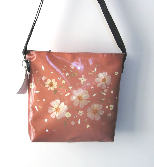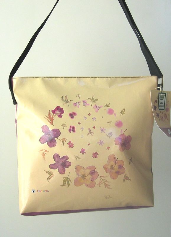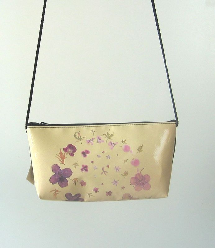 bag mod. CITY Q - D (shoulder belt + zip closure), image of composition created with dried flowers (natural colors) "RODODENDRI VIOLA SU FONDO BEIGE" (comp. 037) |