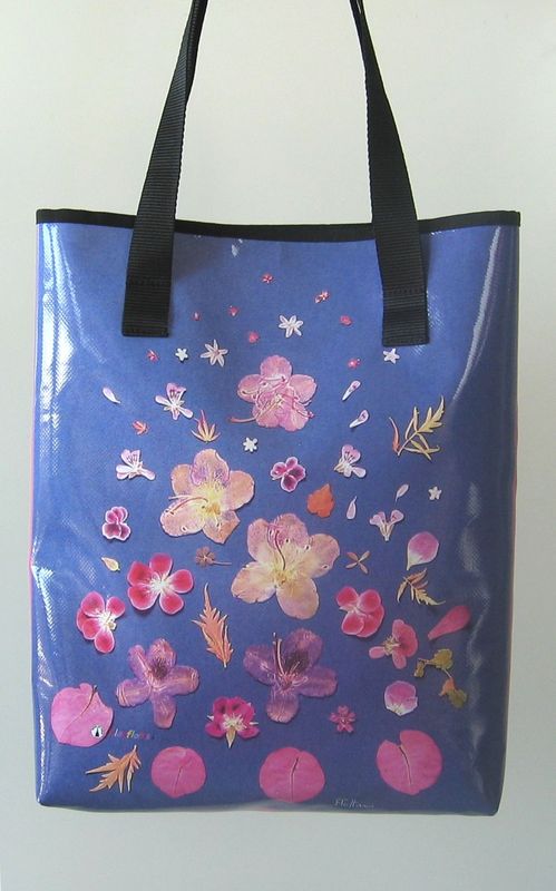 bag mod. CITY V - A (double handle + velcro closure), image of composition created with dried flowers (natural colors) "RODODENDRI SU FONDO BLU" (comp. 058) |
