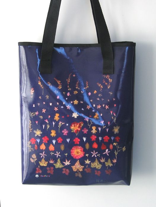 bag mod. CITY V - A (double handle + velcro closure), image of composition created with dried flowers (natural colors) "FIORI VARI SU FONDO BLU SCURO" (comp. 059) |