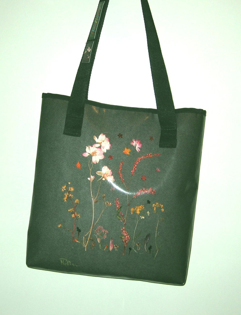 bag mod. TRENDY, image of composition created with dried flowers (natural colors) "FIORI SPARSI SU FONDO VERDE" (comp. 061) |