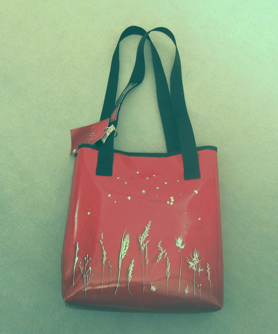 bag mod. MINI CITY Q - A (double handle + velcro closure), image of composition created with dried (natural colors) "SPIGHE IN FILA SU FONDO BORDEAUX" (comp. 064) |