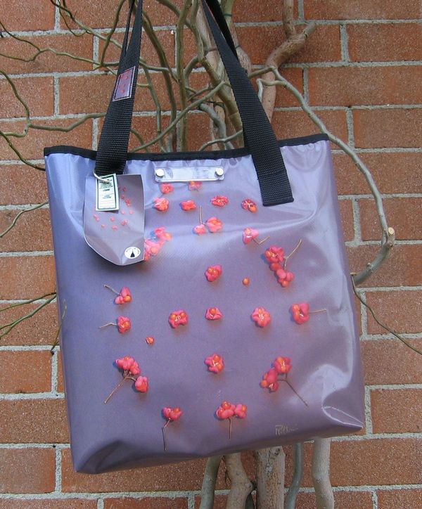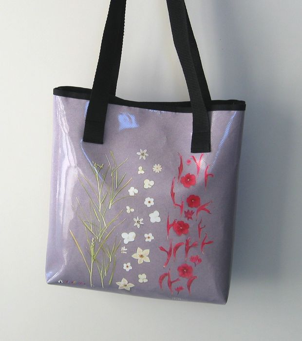 bag mod. MINI CITY Q - A (double handle + velcro closure), image of composition created with dried flowers (natural colors) "EUONYMUS SU FONDO VIOLA" (comp. 070) |