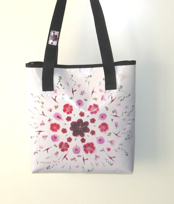 bag mod. MINI CITY Q - A (double handle + velcro closure), image of composition created with dried flowers (natural colors) "MANDALA GERANI SU FONDO BIANCO" (comp. 041) |