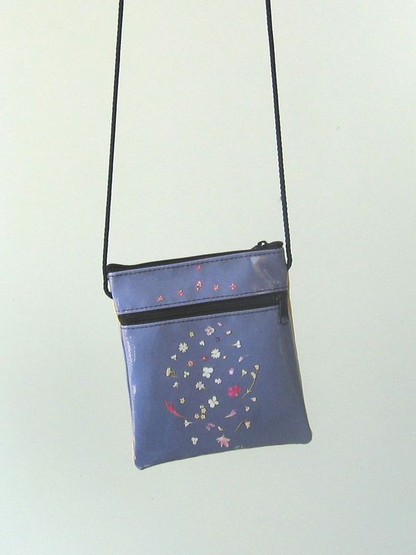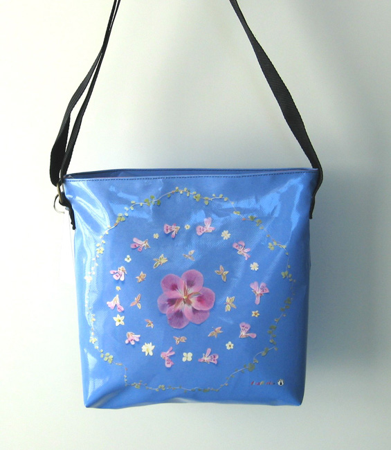 bag mod. MINI CITY Q - D (shoulder belt + zip closure), image of composition created with dried flowers (natural colors) "MANDALA GERANIO SU FONDO BLU" (comp. 044) |