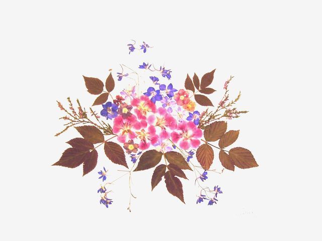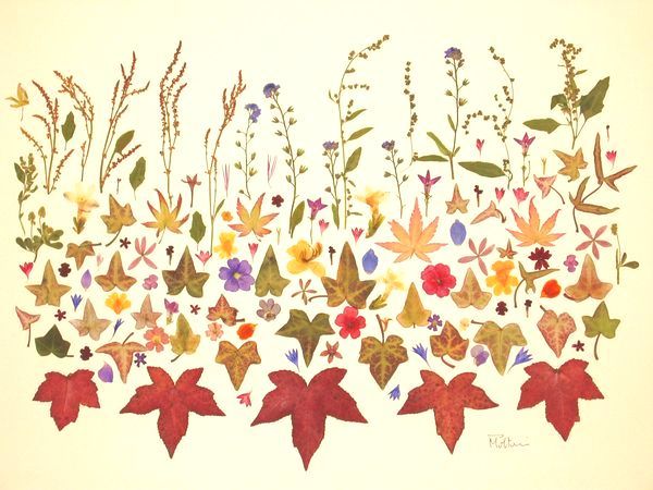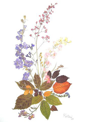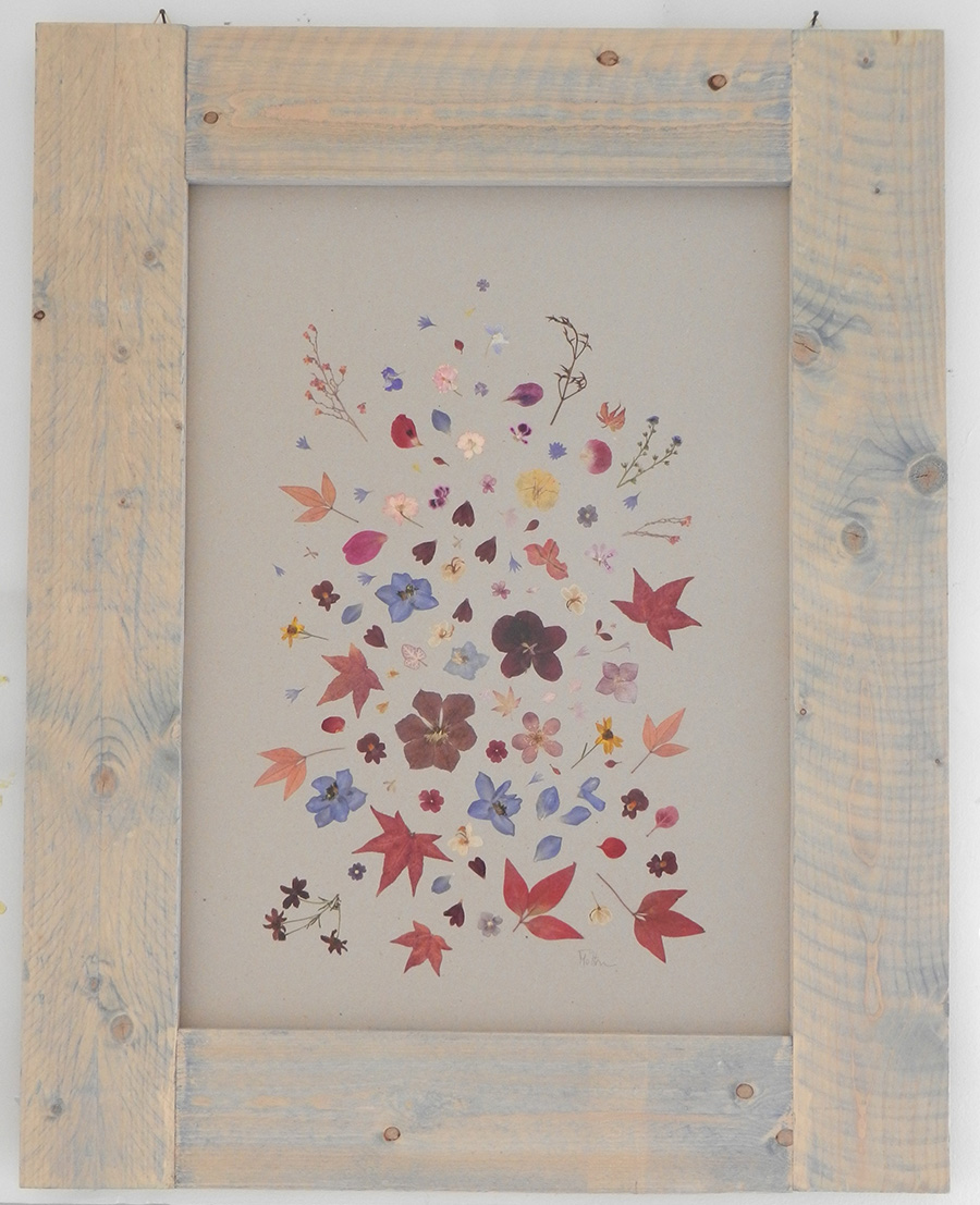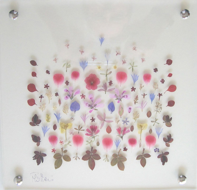 composition created with dried flowers, between two transparent plexiglass sheets, natural colors |